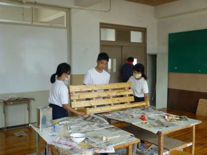 少し休憩したあとは,椅子づくりです。完成が楽しみですね!