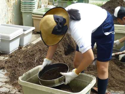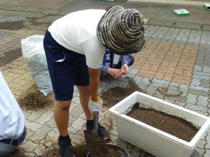 生活の時間です。野菜を育てるのに,土つくりはとても大切です。