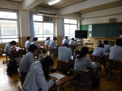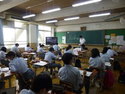 数学は教育実習生の先生が授業をされています。生徒たちも真剣です。とってもいい雰囲気で進んでいます!