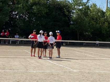 女子ソフトテニス部新人戦団体戦が大枝中学校にて行われました。