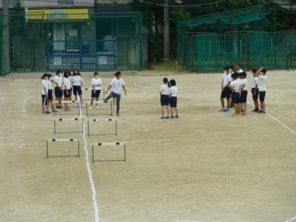 体育では,ハードル走の練習ですね。頑張っています!