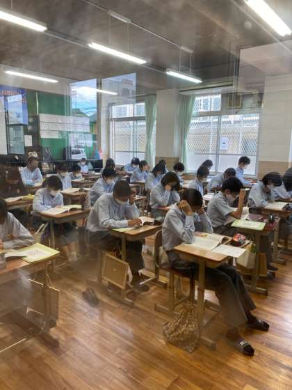 4限は道徳です。2組は「47年の感謝をこめて」,3組は「愛」を題材にした授業です。それぞれ道徳の教科書を黙読中・・・。「わたしの主張」の学年大会で,SNSでのトラブルやいじめをテーマに主張をしてくれた人がいましたが,その中で『やっぱり道徳の時間って大切なんだなぁと改めて感じました。』と話していました。落ち着いた時間の中で,じっくり考えて自分の意見や考えを持ったり,友達の考えを知る時間となっています。