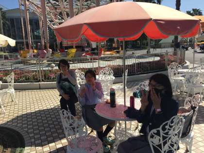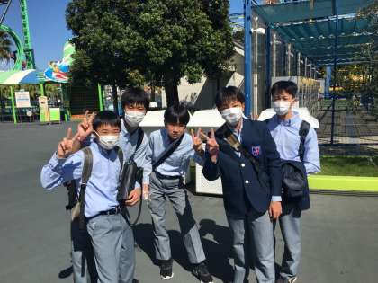 複数の中学が来ていますが、園内ではソーシャルディスタンス、マスク着用が徹底されています!写真を撮るときはマスクを少しずらしています。
