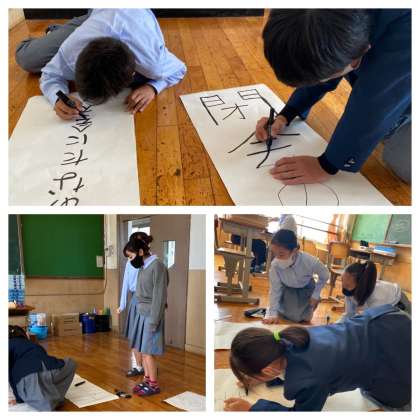 昼休み、学習室では、図書文化委員+有志の人が、舞台の部のめくりプロ作成をしたり、クラスの歌詞を模造紙に書きに集まってきています。