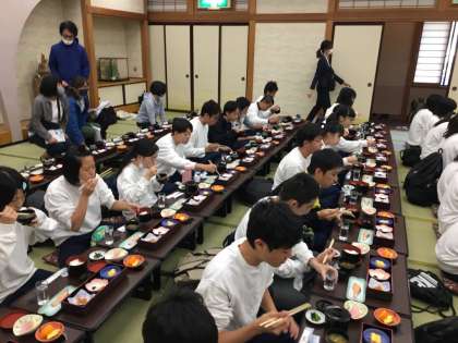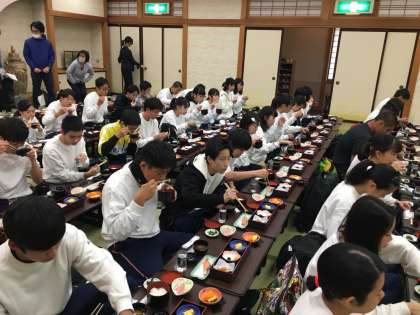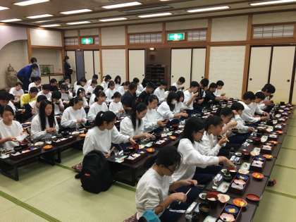 検温を済ませました。全員健康です。朝食の様子です。これから始まる体験に備えて,しっかり栄養補給をしておきましょう。出発時には水分も忘れずに。