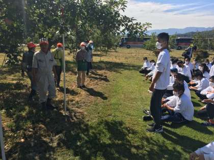 インストラクターの方々に挨拶と御礼をして,一路,昼神温泉に戻り昼食です。農家の皆さん本当にありがとうございました。
