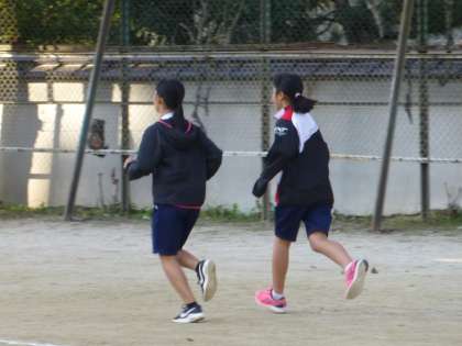 グランドでは,陸上部と野球部が朝練習に取り組んでいました!