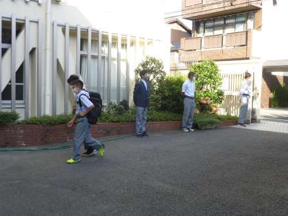 正門前では評議員があいさつ運動をしてくれています!今日はチャイムが鳴りません。自分たちで時間を意識して行動してくださいね!また,あいさつや身だしなみ等,注意しながら学校生活を送りましょう!