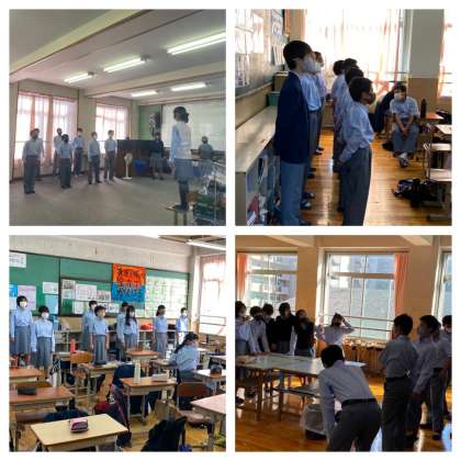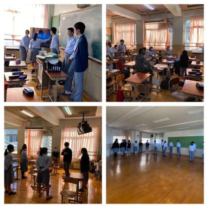 今日は多目的室で各クラス15分ずつ練習を行いました。