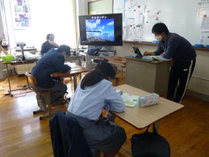 社会です。世界の様々な国について,地図帳や画像を見ながら,お互い知っていることの情報交換をしながら,理解を深めていきました!