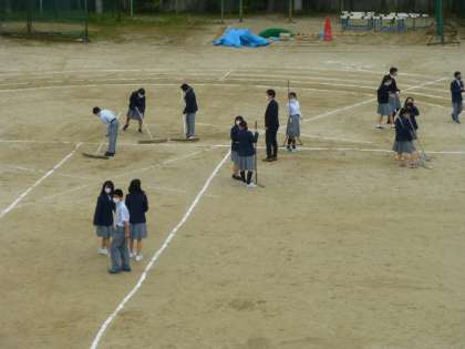 トンボをかけたり,小石を拾ったり・・グランド整備をしてくれました。