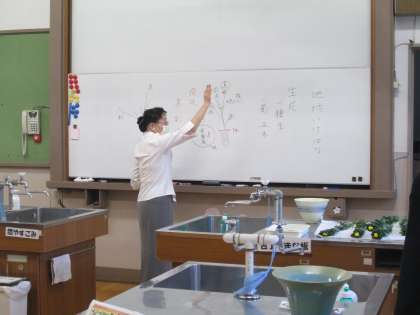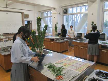今日は、秋らしく菊を生けました。菊の花一種だけを生けるのは、結構難しいです。剣山に一直線に並べて生けるのですが、生けた状態のものは立体を為すように生けます。