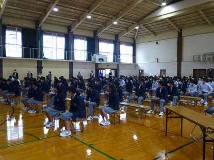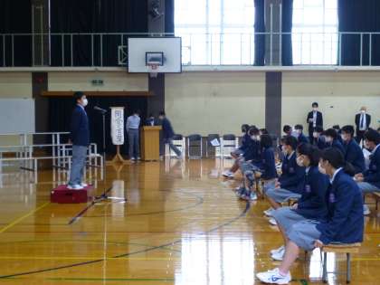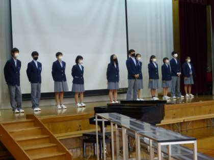 今日は学校祭・文化の部です!例年と違い,規模縮小・無観客での開催となりました!4限目に舞台発表午前の部を行いました!まずは開会宣言&生徒会によるオープニングです。学校祭実行委員が司会・進行をしてくれました。実行委員長や生徒会のみんなから,コロナ禍を意識して,仲間の発表に対して大きな拍手を贈りましょう!と呼びかけてくれました!
