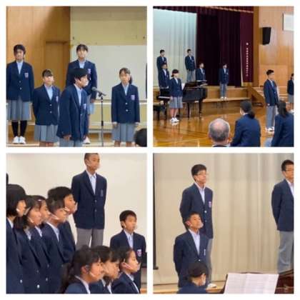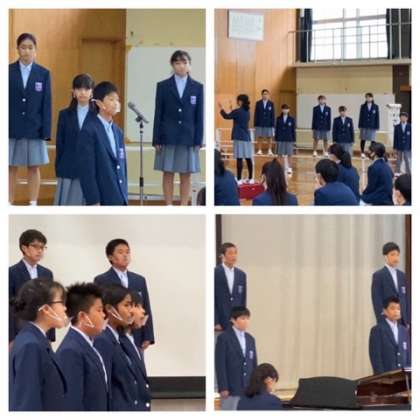 各クラスのスピーチも立派でした。ピアノ伴奏・指揮者の6人は夏休みからの練習大変でしたね。6人とも緊張を感じさせない堂々とした姿が素敵でした。