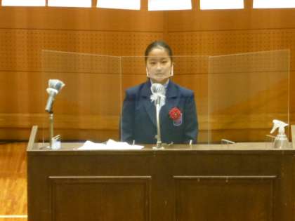 11月7日(土),第36回京都市中学校総合文化祭 第62回京都市中学校弁論大会が〜語ろうよ,あなたの心を〜をテーマに,総合教育センターで開催されました。本校からも1年生のIさんが出場し,「笑顔でいること」という演題で,自分の思いを語ってくれました。とても立派な発表でした!まだ1年生。この経験を生かして,さらに成長してくれることを楽しみにしています。今回の大会では,発表者以外にも,本校生徒が補助員として参加し,計時係や書類の回収等の仕事をして,大会を支えてくれました。本当にありがとう!