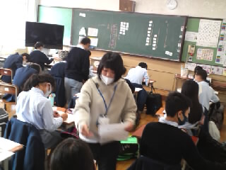 1年4組は、英語の授業で「他己紹介の表現方法」について学びました。