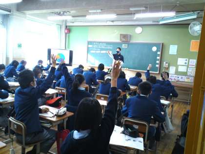 2年2組は、2限目保健体育の授業で「交通事故の発生要因」について考えてみました。