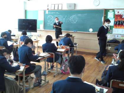 3年4組は、数学の授業で「円周角の定理を利用した証明」に取り組みました。