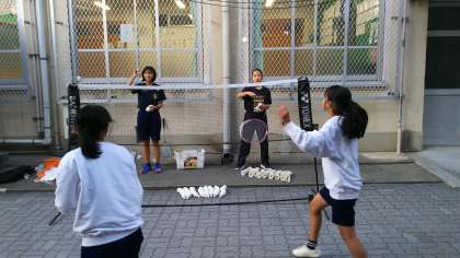 バドミントン部は,ネット越しにシャトルを落とす練習でした。バドミントンではこの技術が重要です。世界で活躍する選手もこの技が上手いです。
