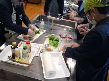 2年2組は、家庭科の授業で調理実習として「ミズナの肉巻」を作りました。美味しくできたでしょうか。