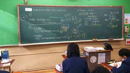 2年3組の理科の授業です。電流について学習しました。学習プリントと自作ノートと併用し,自分がわかるノート作りをしています。