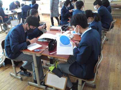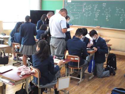 3年2組は、数学の授業で「三平方(ピタゴラス)の定理」の応用について学びました。