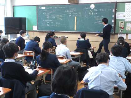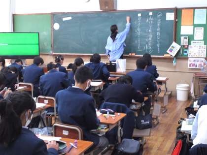1年2組は、数学の授業で「円とおおぎ形の面積」について学びました。