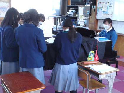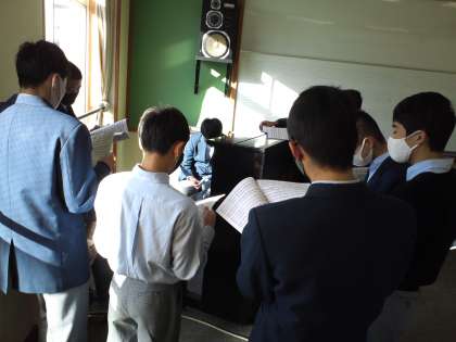 3年3組は、音楽の授業で「混声3部合唱曲”桜ノ雨”の合唱練習」をしました。