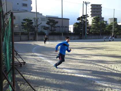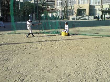 野球部は、遠投の練習です。遠投はどれだけ遠くに投げることができるかということが,自分の筋力を知るうえで重要です。また,試合では,低く早いボールをワンバウンドで投げるようにしてその延長にノーバウンドがあり,その中間にはカットする選手をイメージした練習をしなくてはなりません。