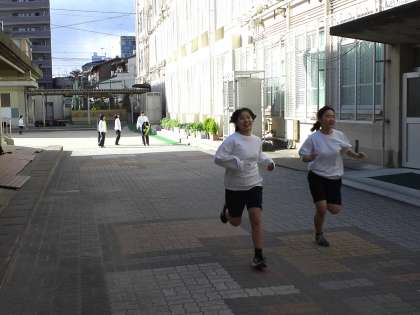 バドミントン部は、インターバル走による基礎体力作りをしていました。