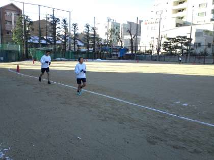 1組は、体育の授業で「持久走」の計測を行いました。150m×10周をよく頑張りました。