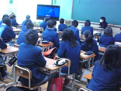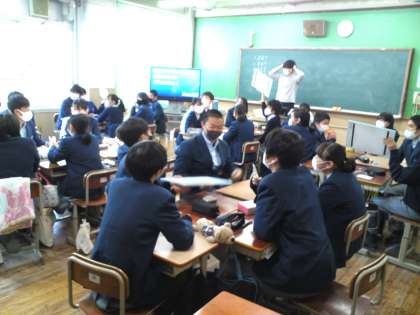 2年2組は、英語の授業で3学期に習う「比較級・最上級」の予習をしました。