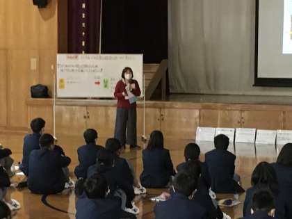先週の木曜日、1年生は、市民インストラクターの講師の先生をお招きして、「情報モラル教室」を実施しました。