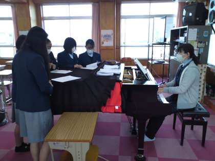 3年4組は、音楽の授業で「混声三部合唱曲“旅立ちの日に”と同じく“桜ノ雨”」のパート練習をしました。みんなしっかり練習していました。