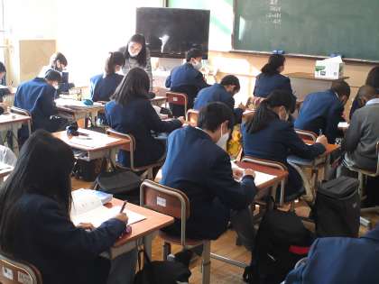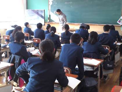 1年3組は、数学の授業で「一次方程式」について復習し、さらに先取りして冬休みの宿題に取り組みました。