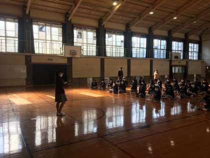 本日,4時間目,三年生の学年集会を各クラス評議委員司会の下,行いました。