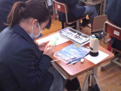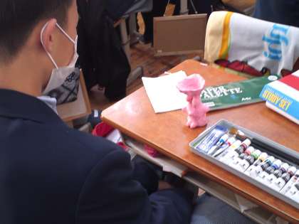 1年4組は、美術の授業で「土器作り」をしました。目指すは「未来に発掘されるかもしれない土器をつくろう」です。縄文式土器や弥生式土器などに捉われることなくみんな独創性のある作品作りをしていました。