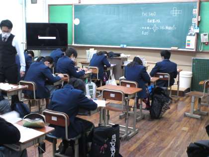 1年4組は、体育の授業で「持久走(10分間走)」をしました。中には、男子生徒を抜いて周回遅れにする女子生徒もいましたが、冬休みで身体がなまっているので、あまり無理をせず、徐々に身体を慣らしてください。