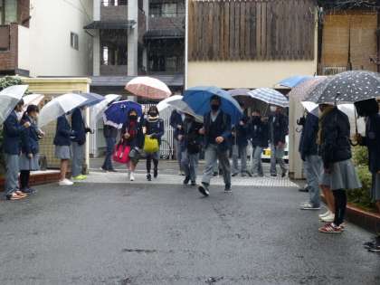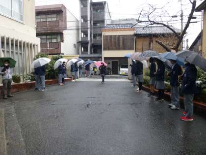 正門ではあいさつ運動をしてくれていました!今日はチャイムが鳴りません。自分たちで時間管理をしながら,しっかり行動しましょう!