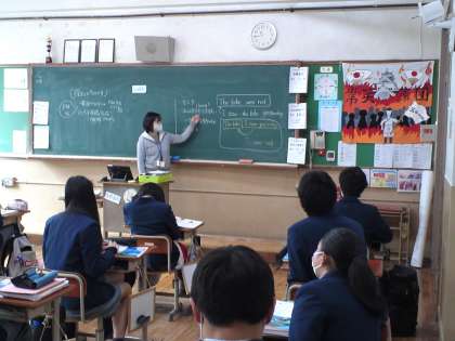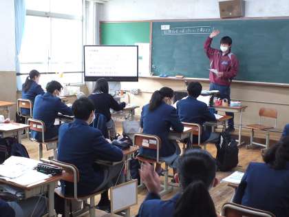 3年4組は、英語の授業で習ったことの復習と「中学校生活を振り返って」と題するスピーチの原稿づくりをしました。