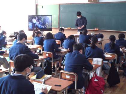 1年4組は、社会の授業で「天平文化」について学びました。天平文化といえば、平城京ですね。ここで当時平城京を称えた和歌を紹介します。小野老は、「青丹(あおに)よし 寧楽(なら)の都は咲く花の 薫(にほ)ふがごとく 今盛りなり」と詠んでいます。色の鮮やかさを「にほふ(におう)」と表現しているところに日本人の感性の豊かさが感じられますね。