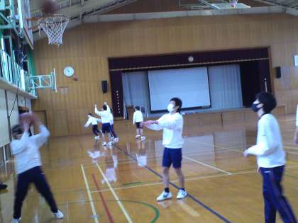 3年2組は、体育の授業でバスケットボールの基本練習の後、各チームに分かれて試合をしました。