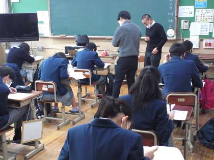 3年2組は、数学の授業で「入試問題にチャレンジしよう」ということで過去問に取り組みました。