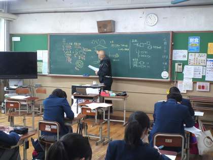 3年4組は、数学の授業で入試問題(過去問)に取り組み、7限目にその答え合せと解説を受けました。