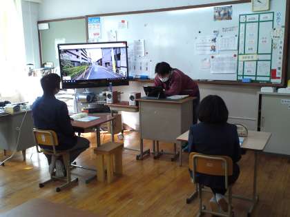1組は、社会の授業でGoogleストリートビューを使って学区内の地理を学びました。
