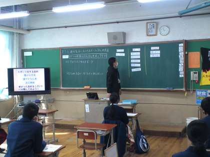 3年3組は、保健体育の授業で「現代生活におけるスポーツの文化的意義」について学びました。
