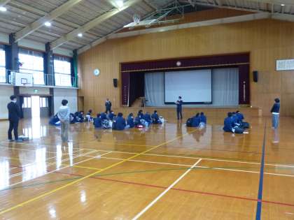 本日昼食後に,明日から始まる公立前期選抜に向けての前日指導を体育館で行いました。学校長激励のあと,進路担当の先生から諸注意を受けました。