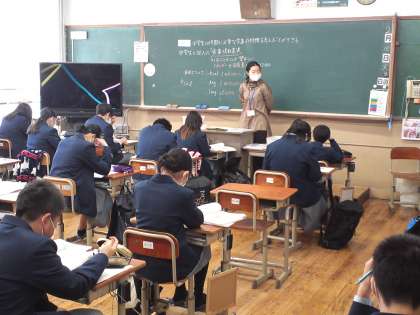1年2組は、英語の授業で「過去の出来事を表現することができる」というテーマで「過去形」について学びました。
