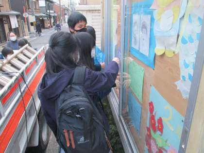 校門の西横にある掲示板の飾りが12月のままだったのですが、今日ようやくリニューアルできました。