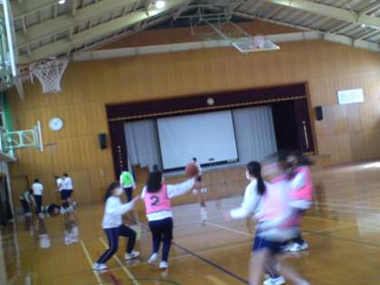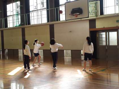 3年2組は、体育の授業で「バスケットボール」の基本練習(シュート、ミドルシュート、ランニングシュート等)の後、ゲームをしました。